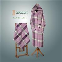 حوله تنپوش نخی سنتی یزدی طرح چهارخونه فلورا بنفش (صادراتی) Cotton bathrobe towel